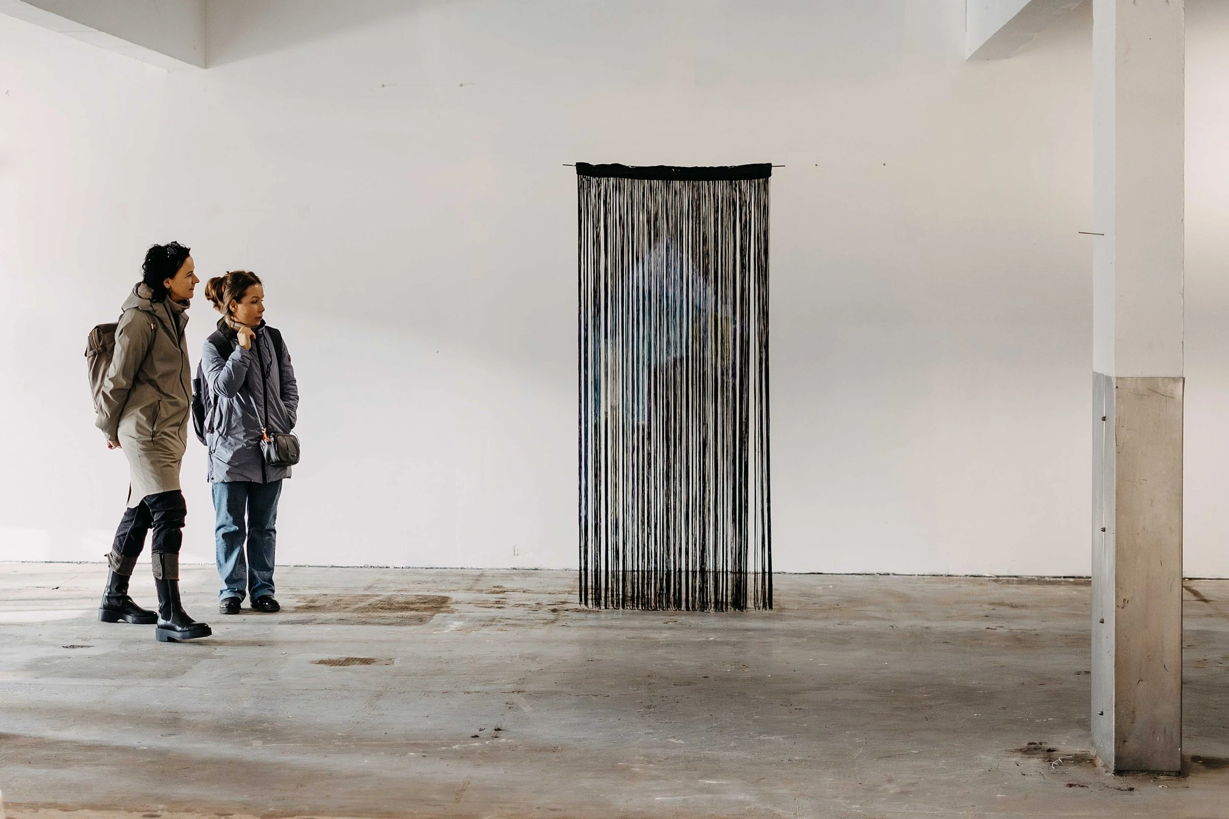 2024 / Acrylique sur fils noirs / 2 panneaux de 90 x 180 cm